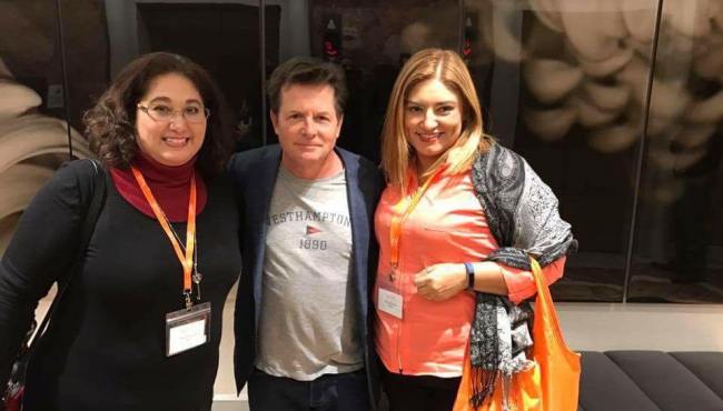 Then when I was a fellow we at BCM did various gala’s to raise funds for PD.  Mike was the guest of honor  for one of these events. he had already published his first book and everyone including me was so looking forward to meeting him. and getting my book autographed.  But, alas this was not meant to be. he had severe dyskinesia’s by then and was having a difficult time, my heart went out to him. however, one of his managers promised me to get my book autographed but I never got back. (a bit disappointing). yet, Michael appeared live via satellite and did in fact speak to us and despite his severe uncontrolled movements he was as charming and personable as always. Little did I know then that we would share so much more in common both off us developing the illness about the same age.  Twenty years later I would finally get the chance to meet him in person and thank him for his contribution and his eternal optimism. nor did I realize I would get a chance to be part of his foundation as an ambassador for public policy issues.